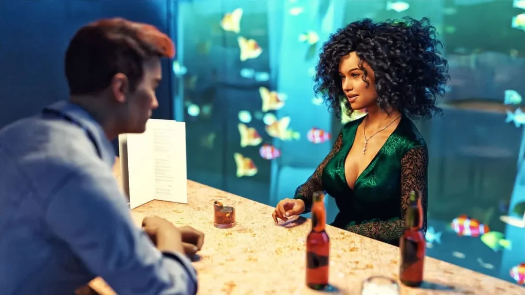 Let’s talk about the presentation, because it’s stunning. The Keeley visual novel boasts over 1,600 high-quality images. These aren’t static character sprites against plain backgrounds. We’re talking detailed office spaces, cozy apartments, and vibrant bars that make the world feel alive. The characters are visually appealing with a range of expressions that sell every moment of doubt, desire, and joy.