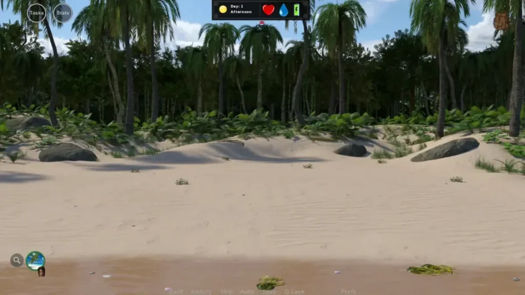 Your days are spent managing core stats like Energy, Hunger, and Thirst. To keep these up, you must explore the island and gather resources. This is the heart of any good deserted island survival game, and Stranded Dick gets it right.